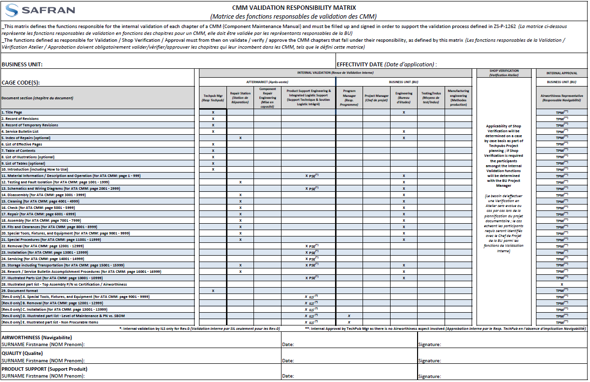 Standard CMM OEM Validation Matrix