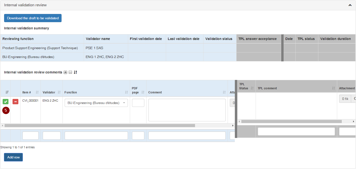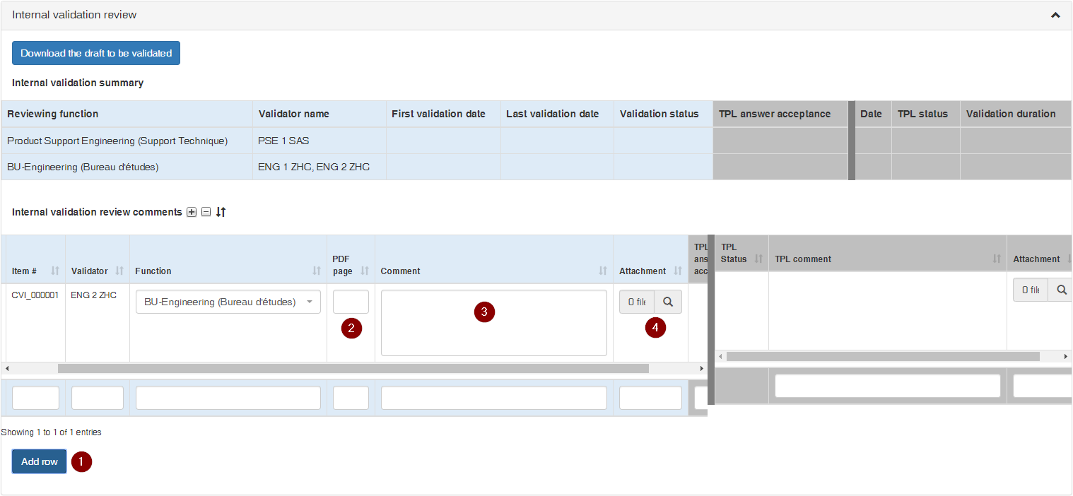and an Internal Validation Review Comments list, where each Reviewer can submit comments as necessary