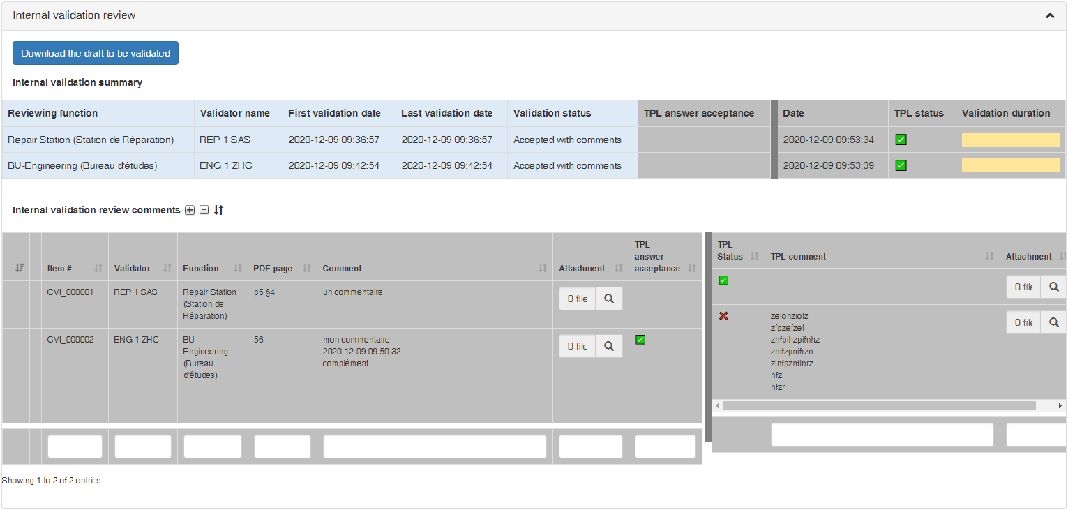 an Internal Validation Summary box that lists all the involved Reviewers with their current validation status