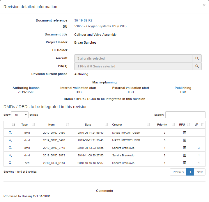 Additionally each object can be double-clicked to obtain further project data in a dedicated pop-up that contains 4 sections: