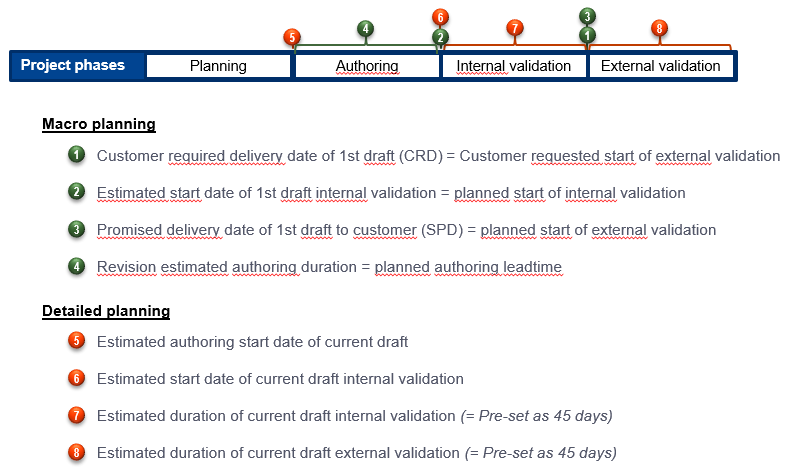 - The principle for Macro-planning and Detailed planning and the meaning of each date and duration in the project phases are as follows: